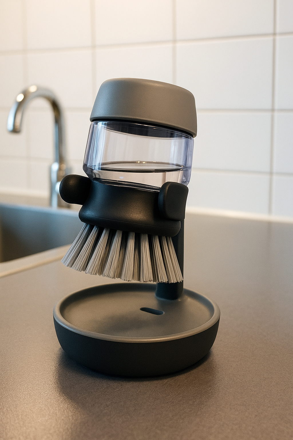Cepillo de cocina recargable Palm Scrub para limpiar y lavar la cocina con soporte de almacenamiento, gris